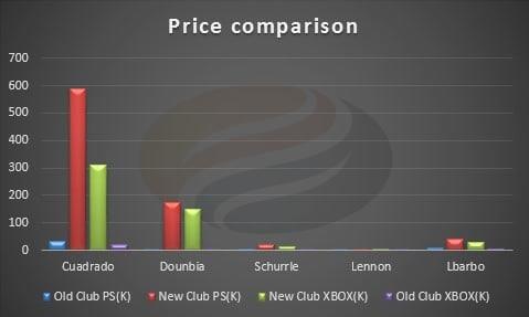 Examine the comprehensive data visualization below detailing price fluctuation patterns across other transferred players throughout the update cycle.