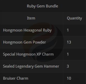 Gem enhancements deliver substantial combat performance improvements through specialized stat allocations. The Hongmoon Store introduces two distinct bundle types: Ruby and Emerald configurations, each containing Hongmoon Hexagonal Gems alongside complementary utility items supporting character progression.