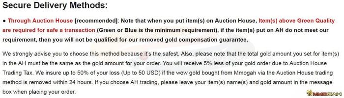 - Auction House delivery method significantly reduces account ban risks compared to direct trades