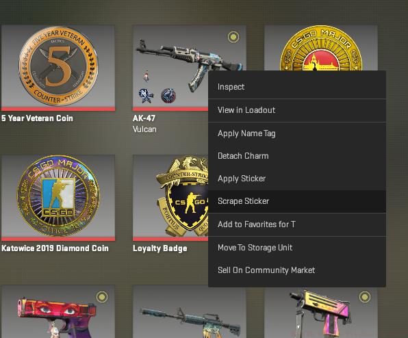 - Right-click weapon skins in inventory and select ‘Scrape Sticker’ for controlled removal process