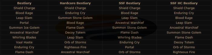 The consistent prominence of Ancestral Warchief and Blood Rage throughout all Bestiary league variations confirms the dominance of attack-focused build strategies in the current metagame. This trend suggests that spell-casting alternatives may require specific counter-strategies or exceptional gear to compete effectively.
