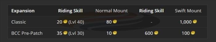 The Pre-Patch implements significant adjustments to both Normal and Epic Mount acquisition, substantially easing accessibility for players leveling new characters. Standard (blue) 60% Mounts become available at level 30 rather than level 40. This dramatically speeds up the leveling progression between levels 30 and 40, historically one of the most challenging experience ranges for new adventurers. Additionally, combined Riding Skill and Mount purchase expenses have been reduced.